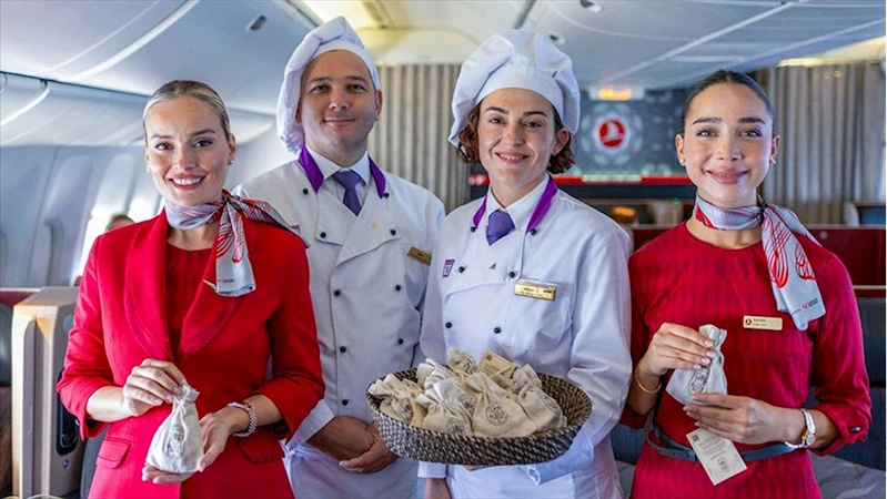 THY'nin dünyanın en iyi uçak içi ikram konseptine sahip hava yolu konumunu korumaya ve güçlendirmeye devam ettiğinin altı çizilen açıklamada, menülerinde kullandığı ürünlerin yüzde 80'ini yerel üreticilerden temin ettiği, misafirlerinin beğenisine sunduğu yemeklerini her gün uzman şeflere en taze ürünlerle hazırlattığı bildirildi.