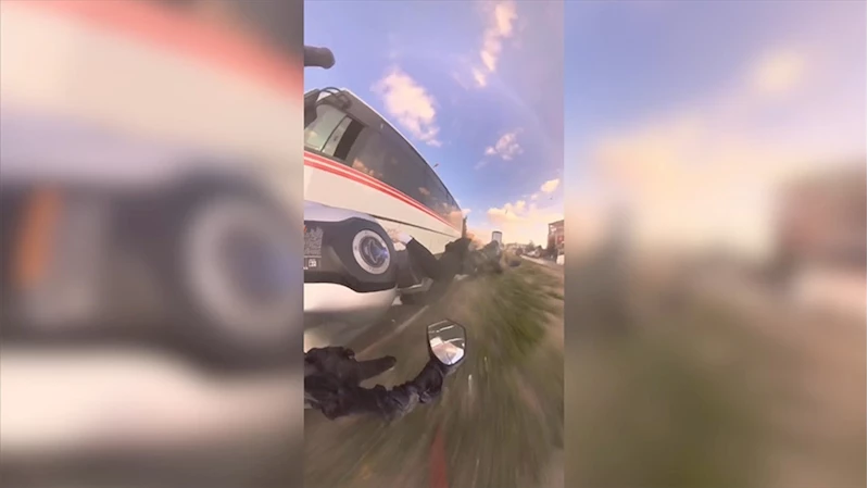 Kaza anı, Doğan'ın kask kamerasınca kaydedildi. Görüntülerde, motosikletlinin bir anda şerit değiştiren minibüsle çarpışması, sürücünün düşmesi, motosikletin ise yaklaşık 50 metre asfaltta sürüklenmesi yer aldı.