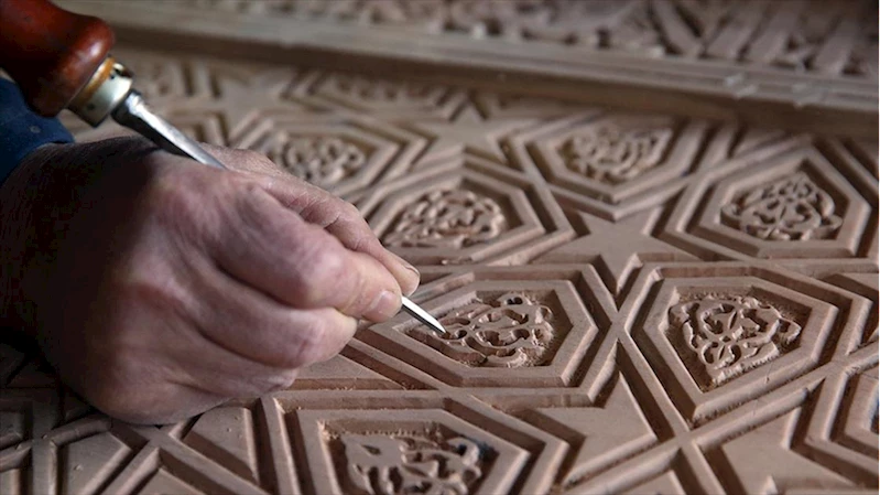 "Bitmesine yaklaşık 1 ay daha var. 'La galibe illallah' yazısıyla dönen bir çerçevesi var. 24 tane oyduk çerçeveye. En az 2 ay sadece 'La galibe illallah' yazısına uğraştım. İçinde de Selçuklu yıldızı dediğimiz yıldız var, bize ait modeller. 15 yıllık sanat hayatımda bu kadar uzun süren bir iş yapmamıştım. Gerçekten çok emek verdim. Zor işçilikti. Gözlerimden yaş geliyor bazen. Toplu iğneyle kuyu kazmak gibi. Basit bir iş değil."