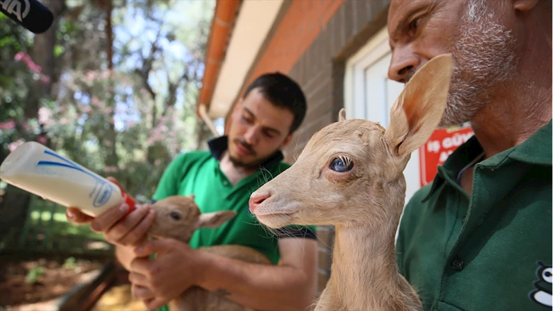 Erken doğan ikiz geyik yavrularına hayvanat bahçesi personelinden "anne şefkati"