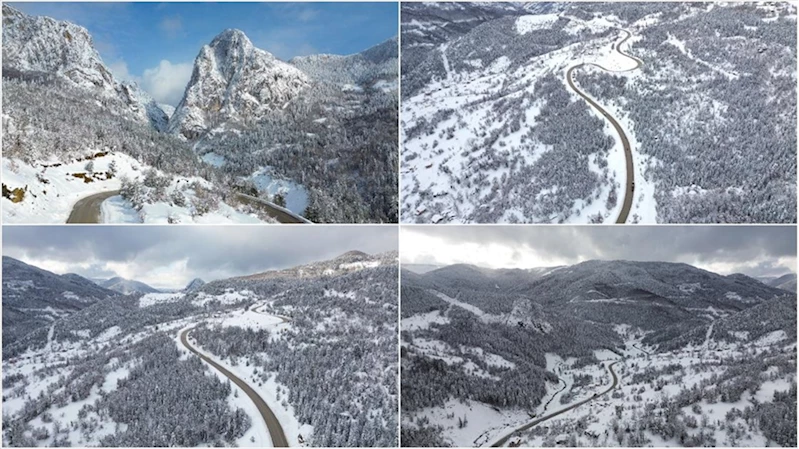 KASTAMONU (AA) - Küre ilçesine 8 kilometre uzaklıktaki tabiat parkı ile çevresindeki ormanlar, bölgedeki kar yağışının ardından beyaza büründü.