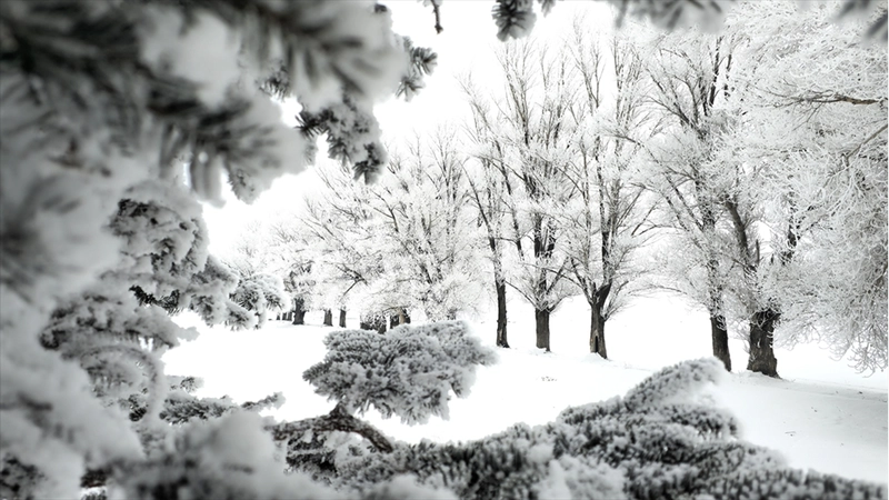 Beyaz örtüyle kaplı kentte sisin de etkisiyle ağaçlar güzel görüntü oluşturdu.