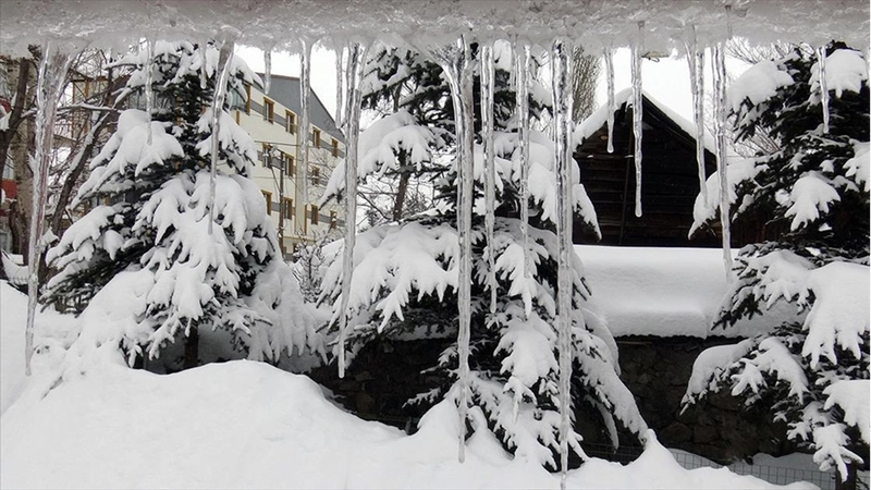 Soğuk havanın etkisiyle bina çatılarında buz sarkıtları oluştu. Karayolları 18. Bölge Müdürlüğüne bağlı ekipler, rotatif ve greyderlerle yol genişletme çalışması başlattı.