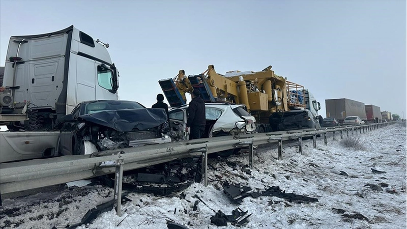 ERZURUM (AA) - İlçenin Erzurum-Aşkale kara yolunda, yolcu otobüsü, tır, minibüs, iş makinesi, otomobil ve ticari araçların da olduğu zincirleme trafik kazası meydana geldi.
