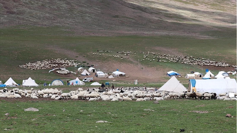 ERZURUM (AA) - Türkiye'nin farklı bölgelerinden gelip yaylada kurdukları çadırlarda konaklayan göçerler, yaz aylarında geniş meralarda binlerce hayvanını otlatıyor.
