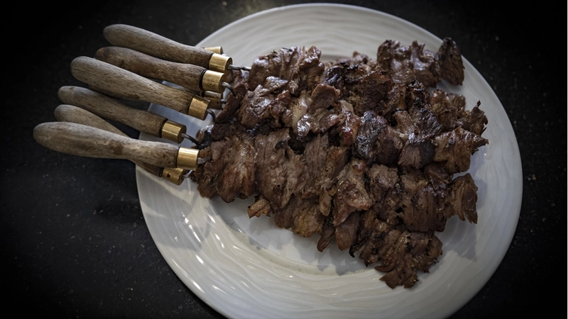 Pişirilmeden önce soğan, karabiber ve tuzla terbiye edilen et, dinlendirme aşamasının ardından parçalar halinde "cağ" adı verilen şişlere takılıyor.