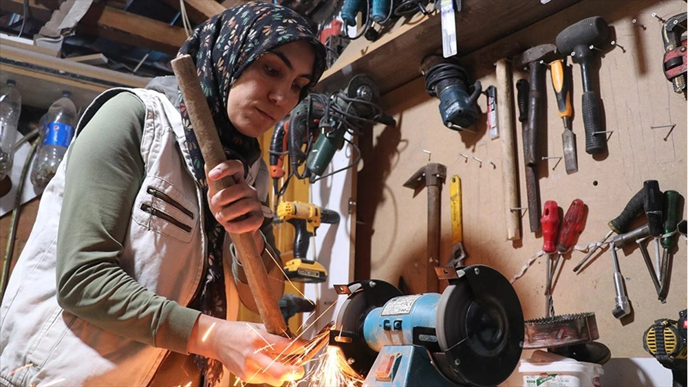 Yasemin Aktaş, AA muhabirine, evlendikten sonra dolap imalatı yapan eşine yardımcı olmaya çalıştığını söyledi.