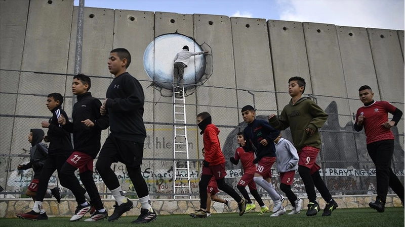 Yıkım emrine rağmen çocuklar, İsrail Ayrım (Utanç) Duvarı’na bitişik sahada antrenmanlarını sürdürürken, emrin her an uygulanabileceği endişesi kampta sürekli tedirginlik yaratıyor.