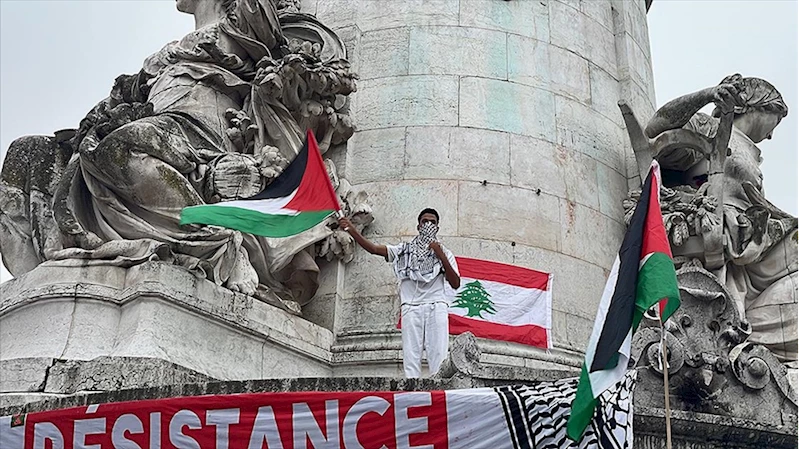 PARIS (AA) - Filistin ve Lübnan destekçileri, Paris'teki Cumhuriyet Meydanı'nda toplandı.