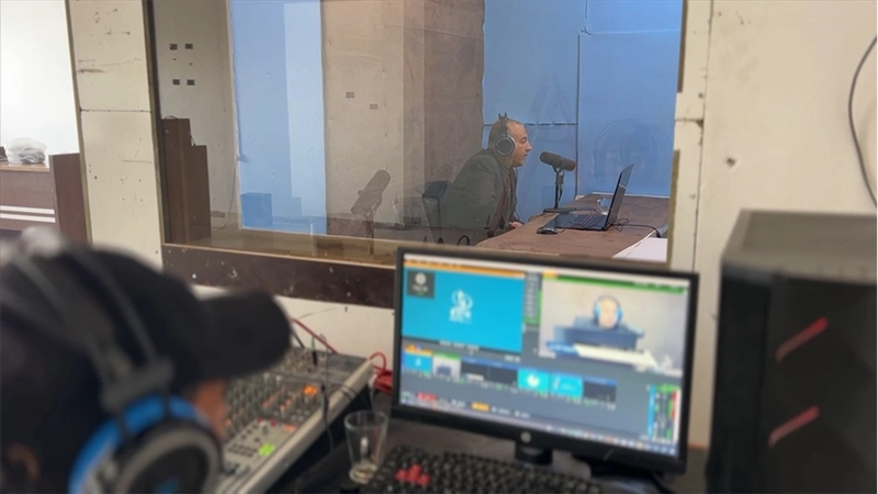 Radyo spikeri İmad Nur, dinleyicilerinin alıştığı sesiyle, İsrail ordusunun saldırılarının ardından geride kalan ağır yaşam koşullarını programlarında ele almaya çalışıyor.