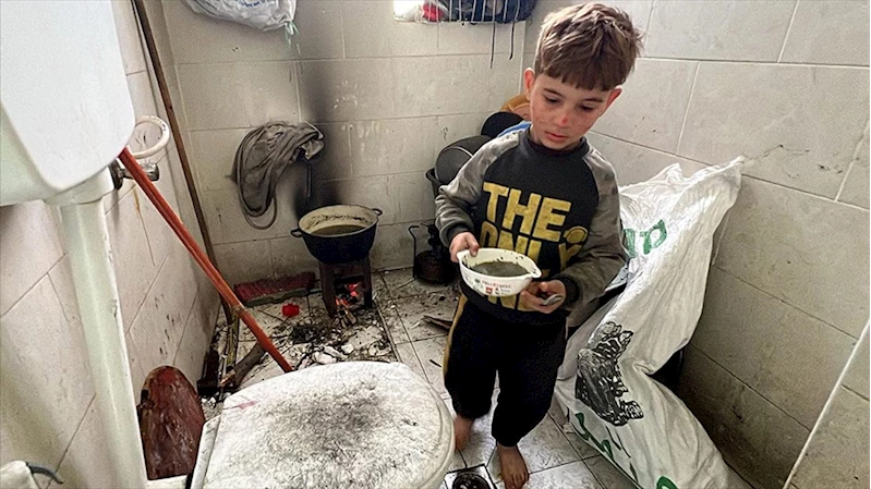 Yemekleri, içinde tuvalet olan bir banyoda pişiriyorlarYaklaşık 2 aydır hastanede yaşadıklarını söyleyen baba Ammar el-Gandur, "Yiyecek, içecek bulamıyoruz. Çocuklarımız 2 aydır ekmek yemedi. Ebegümeci yemeği ya da domates salçasından çorba yaparak açlığımızı yatıştırıyoruz. Çocuklar 'yoktan' anlamıyor ve aç oldukları için sürekli ağlıyorlar." dedi.