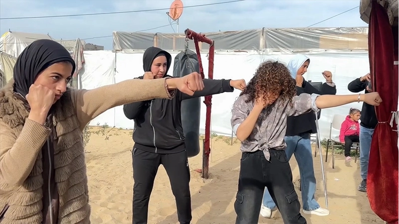12 yaşındaki Miyar: “Kulübümüz yıkıldı ama bırakmadık”Boks yapan kız çocuklardan 12 yaşındaki Miyar Eyyüb de yaklaşık 8 yıldır sporla ilgilendiğini belirterek, “Gazze’den Han Yunus’un Mevasi bölgesine göç etmek zorunda kaldım. Gazze’de bir spor kulübümüz vardı ama işgal güçleri kulübümüzü yıktı.” dedi.