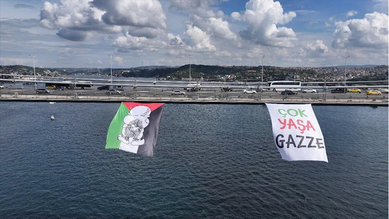 Gazze'de yaşananların unutulmaması adına 15 Temmuz köprüsüne pankart asıldı