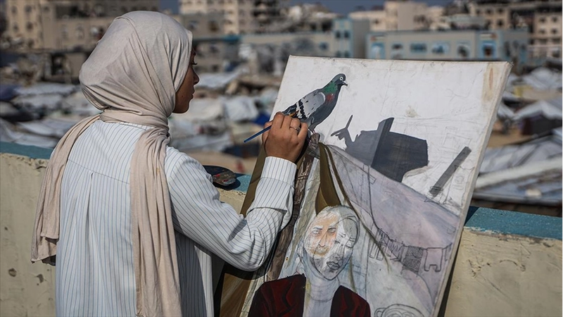 GAZZE (AA) - Gazzeli ressamların yaptığı eserler, yaşanan toplumsal acılara ışık tutuyor. Ressamlar, bir parçası oldukları toplumun sesini fırçalarıyla dünyaya duyurmaya çalışıyor.
