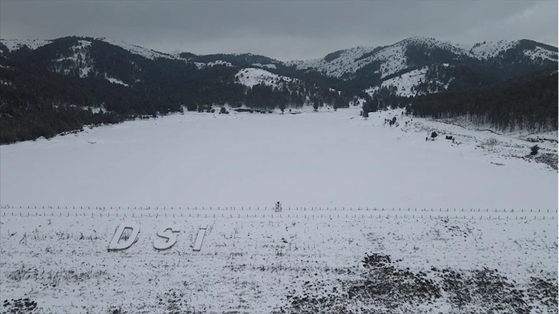 Yüzeyi hava sıcaklıklarının düşmesiyle buz tutan gölet, çevresindeki çam ve köknar ağaçlarıyla beyaza büründü.