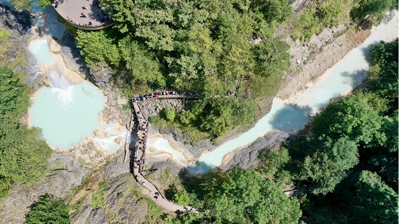 Mürvet Uçak ise travertenlere turla geldiğini ifade ederek, "Bu kadar güzel olacağını düşünmüyordum. Ben Denizli'ye gelin gittim, Pamukkale'yi biliyorum, gerçekten de oraya benziyor. Şaşırdım, hayran hayran buraya bakıyorum. Buranın serin suyu da yaz sıcaklarında insanı serinletiyor." diye konuştu.