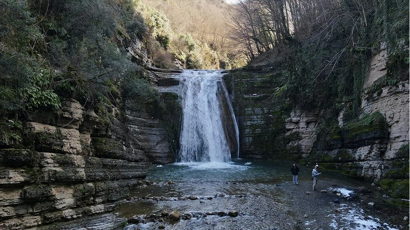 SAMSUN (AA) - Canik ilçesine bağlı Gölalan köyü yakınlarında bulunan şelaleye, köy merkezinden kısa bir yürüyüşle ulaşılabiliyor. Kayaların arasından dökülen suyun oluşturduğu görüntü, ziyaretçilere kışın da görsel şölen sunuyor.