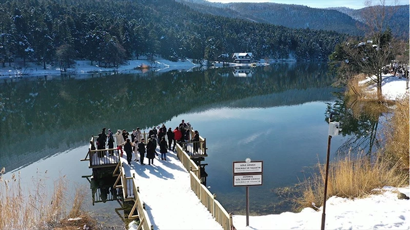 Tabiat parkına gelenler, yer yer karın da eşlik ettiği güzel manzara karşısında göl çevresinde yürüyerek, iskelede fotoğraf çektirerek ve belirlenen alanlarda piknik yaparak vakit geçirdi.