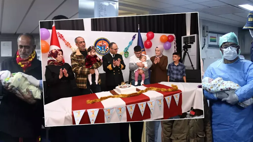 Milli Savunma Bakanlığı(MSB), 6 Şubat depremlerinin ardından TCG Bayraktar Amfibi Gemisi'nde dünyaya gelen bebeklerin doğum gününü kutladı.