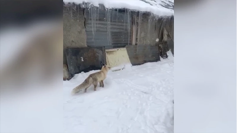 GÜMÜŞHANE (AA) - İlçeye bağlı Günyüzü köyünde yaşayan Şükrü Çoban, kar nedeniyle yiyecek bulamayan bir tilkinin yaşadığı evin çevresine gelerek yiyecek aradığını fark etti.