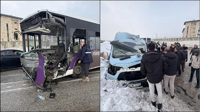 HAKKARI (AA) - Sürücülerinin ismi henüz öğrenilemeyen 30 YE 824 plakalı halk otobüsü ile 30 M 1016 plakalı toplu taşıma minibüsü, Dağlıca yolu Selahaddin Eyyubi Havalimanı yakınında çarpıştı.
