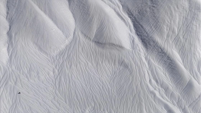 Bölgede en fazla kar yağışı alan yerleşim yerlerinden biri olan Yeni Mahalle yakınındaki arazi ve dağların karla kaplı yüzeyinde şiddetli rüzgarın aşındırmasıyla dalga şeklinde desenler oluştu.