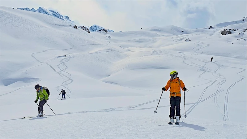 Daha sonra saatlerce süren tırmanışın ardından belirledikleri 3 bin 50 rakımlı Şivekür, 2 bin 950 rakımlı Mehed Dağı ile Bay ve Otluca köylerindeki tepelere tırmanan kayakçılar, yüksek kar örtüsünün üzerinde kayak yaptı.