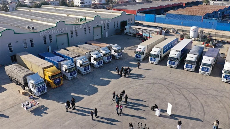 Tırlarda gıda, giyim ve hijyen malzemelerinin bulunduğu dile getiren Aynacı, çalışmada emeği geçenlere teşekkür etti.