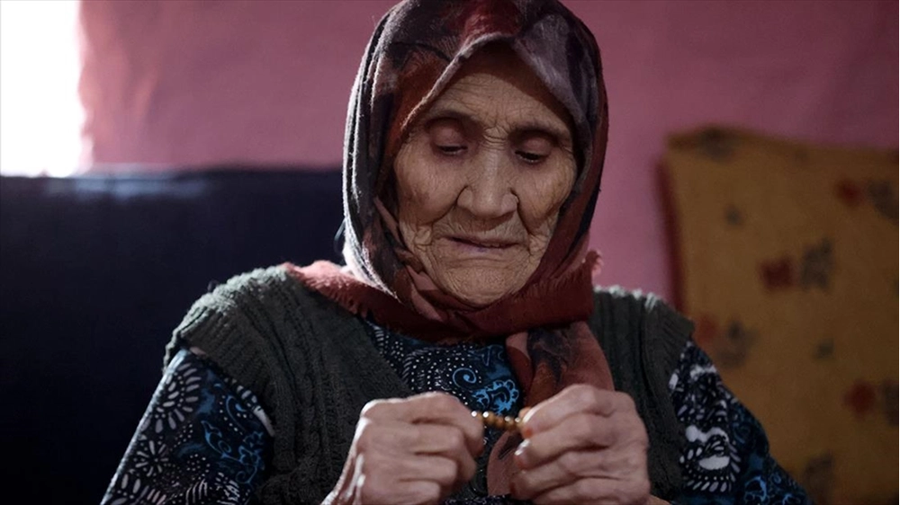 Köyün "asırlık çınarı" olarak tanınan Hatice nine, kışın hava şartlarının çetin geçtiği köyde bir yandan ziyaretçilerinin yolunu gözlerken, diğer yandan da elinden düşürmediği tespihini çekip dua ediyor.