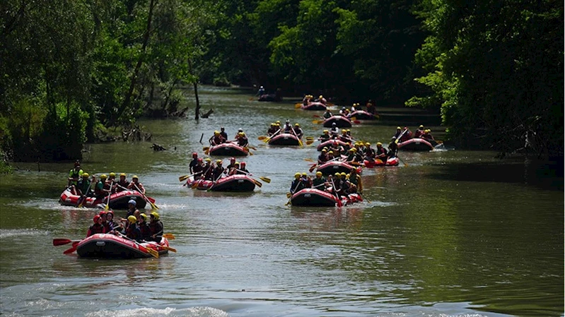 Hava sıcaklığının 30 derece ölçüldüğü kentte maceraseverler, Dokuzdeğirmen mevkisindeki tesislerde rafting yaparak serinledi.
