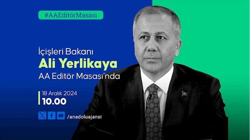ANKARA (AA) - Bakan Yerlikaya, yarın saat 10.00'da başlayacak AA Editör Masası'nda bakanlığının faaliyetlerine ve gündeme ilişkin soruları yanıtlayacak, değerlendirmelerde bulunacak.