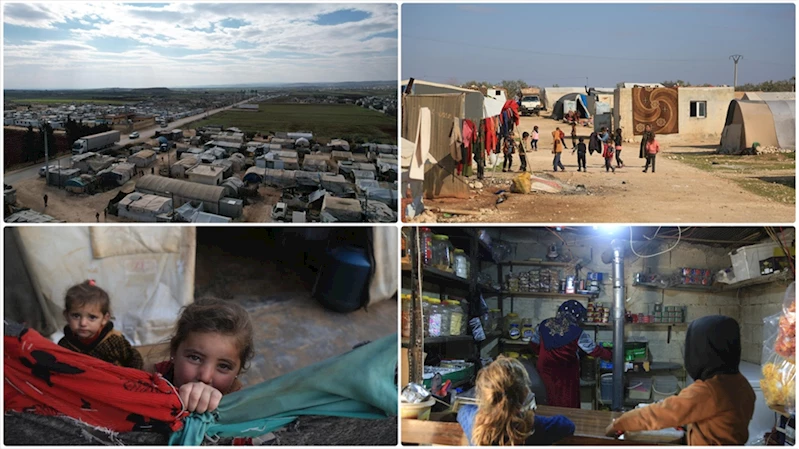 Suriye-Türkiye sınır hattı yakınlarındaki Atme çadır kamplar bölgesinde yaşayan 2 milyona yakın sivilin büyük kısmı, hala evlerine dönemedi.