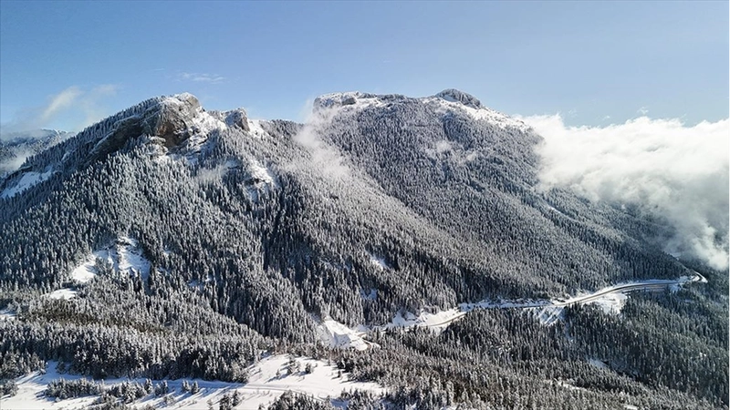 Ilgaz ile Yaralıgöz dağlarında kar yağışının ardından oluşan manzara, dronla görüntülendi.
