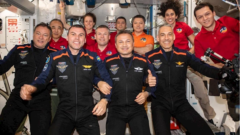 ANKARA (AA) - Gezeravcı, Instagram hesabından, kendilerini taşıyan kapsül kenetlendikten sonra diğer yolcularla fotoğrafını paylaştı.