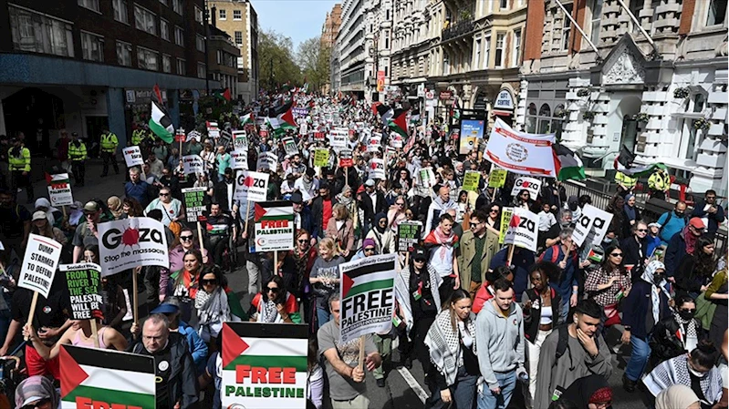 İngiltere'nin İsrail'e silah satışını protesto eden on binlerce kişi Londra'da yürüdü
