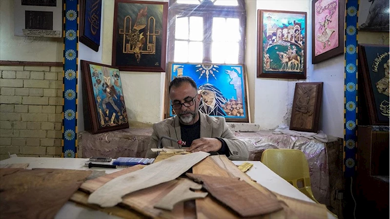 Iraklı ressam, ahşap parçalarını bir araya getirerek sanat eserine dönüştürüyor