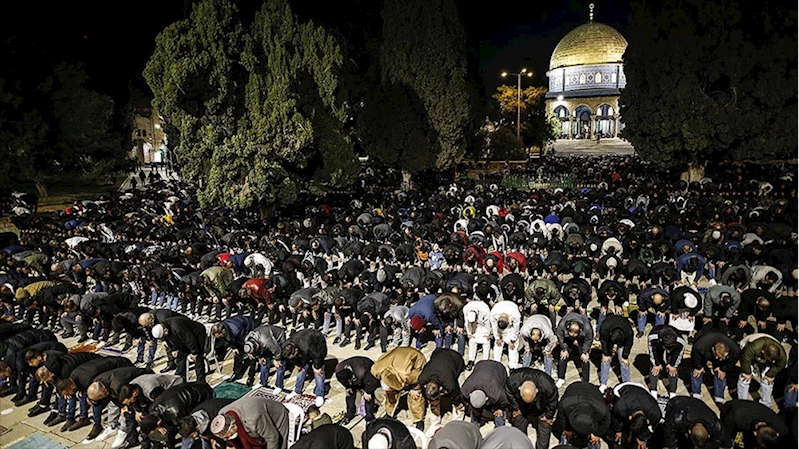İsrail kısıtlamalarına rağmen Mescid-i Aksa'da teravih namazı için 35 bin Müslüman saf tuttu