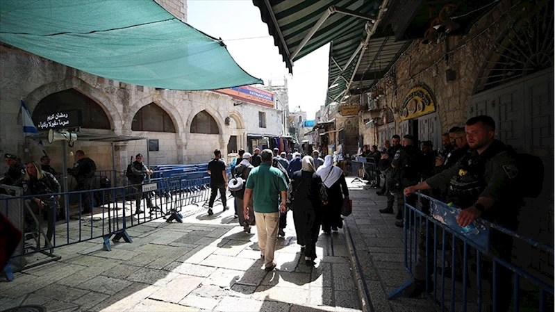 Doğu Kudüs'ün Eski Şehir bölgesinin girişlerine bariyerler kuran İsrail polisi, Mescid-i Aksa'ya sadece yaşlıların ve çocukların girmesine izin verdi.