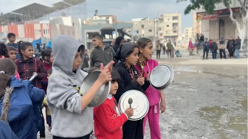 GAZZE (AA) - Sokaklarda toplanan çocuklar, "Ekmek benim hayalim oldu", "Açlık kafirdir" ve "Yiyecek istiyoruz" yazılı pankartlar açtı.