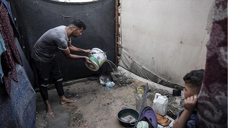 İsrail saldırıları nedeniyle çadırlara mahkum olan Gazzeliler, aniden bastıran yağmurlarla felaketi yaşıyor