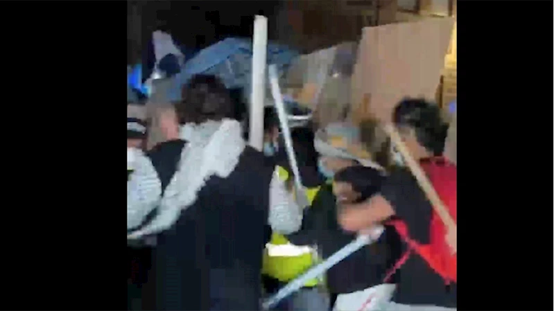 Kampın etrafındaki barikatları yıkmaya çalışan saldırganlar, Filistin destekçisi göstericilere, başta su şişesi olmak üzere ellerindeki cisimleri fırlattı. Bazı öğrencileri darbeden saldırganlar, Filistin destekçisi göstericilere küfürler savurdu.