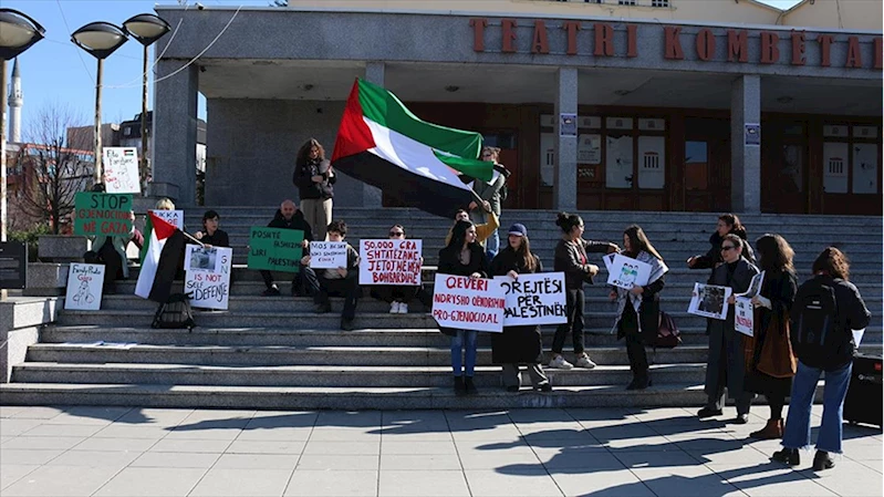 KOSOVA (AA) - Kent merkezindeki Ulusal Tiyatro'nun önünde bir araya gelen göstericiler, Filistin bayraklarıyla "Gazze'deki soykırımı durdurun", "Etnik temizliğe sessiz kalmayın", "Çocukları bombalamak meşru müdafaa değildir" yazılı pankartlar taşıdı.