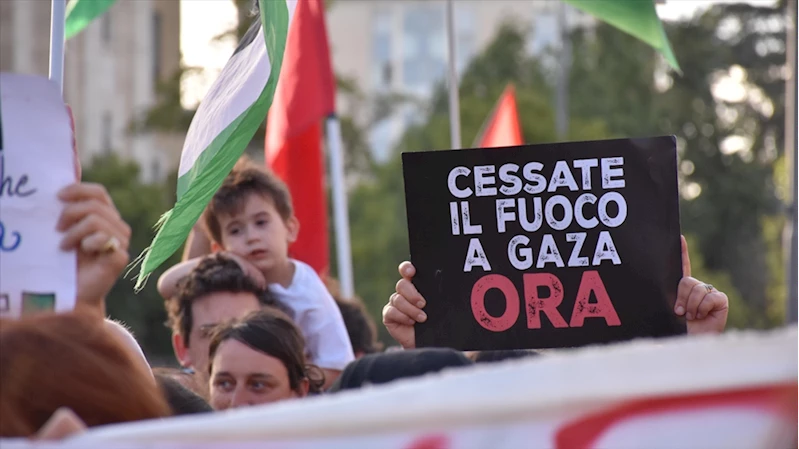 Öğrencilerden Riccardo, yürüyüş öncesinde AA muhabirine, "Buradayız çünkü üniversite öğrencileri olarak soykırıma ‘dur’ demek için seferber olmaya devam ediyoruz." dedi.
