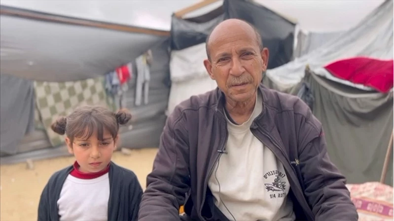 İsrail'in saldırılarında ailesini kaybeden küçük kız dedesiyle kurdukları çadırda hayat mücadelesi veriyor