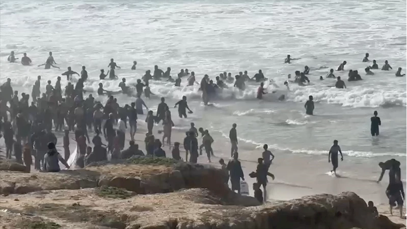 İsrail'in zorla aç bıraktığı Gazzeliler, havadan indirilen yardımlar için sahile akın etti