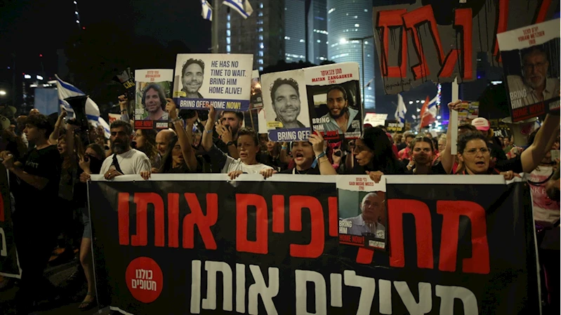 TEL AVIV (AA) - İsrail'de Gazze Şeridi'ndeki İsrailli esirlerin getirilmesi için anlaşma imzalanması çağrısının yapıldığı, Netanyahu hükümetine karşı her hafta cumartesi günü düzenlenen protestolar, bu hafta da geniş katılımla devam etti.