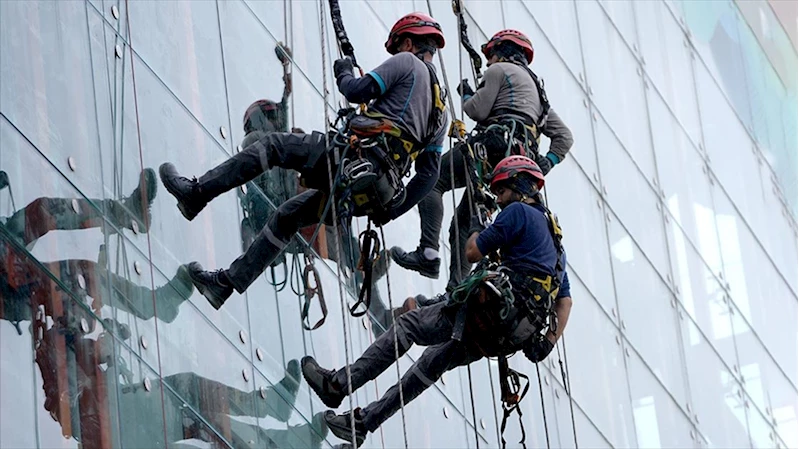 "Genellikle gündüz saatlerinde çalışıyorlar. Ekipte şu an 20 kişi var, arkadaşımızın biri bayan. Normal bir personelin herhangi bir yükseltici ile erişemediği lokasyonlardaki tamir, bakım ve onarım işlerini yapıyorlar. Sadece cam temizliği değil, çelik işlerinin bakımları, mekanik ve elektrik işlerinin bakımları, havada inşaat işlerin tamamlanması gibi bir sürü işi yerine getiriyorlar. Ekipte herkesin ayrı bir işi ve mesleği var."
