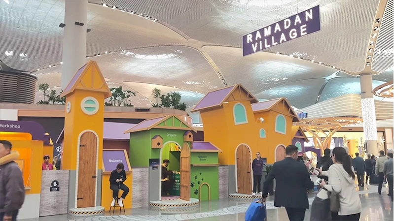 İstanbul Havalimanı'nın Dış Hatlar Giden Yolcu Terminali'nde kurulan 'Ramazan Köyü', yolculara geleneksel ve modern dokunuşların iç içe geçtiği bir deneyim sunuyor.