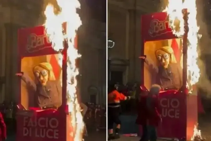 İtalya'da düzenlenen bir karnavalda Başbakan Giorgia Meloni'nin faşist selamı veren kuklası yakıldı.