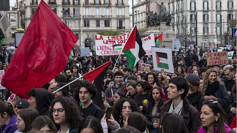 İtalya'da kadınlar günü yürüyüşlerinde Filistin bayrakları açıldı